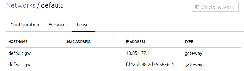 | lxdbr0.gw | | 192.0.2.1 | GATEWAY |